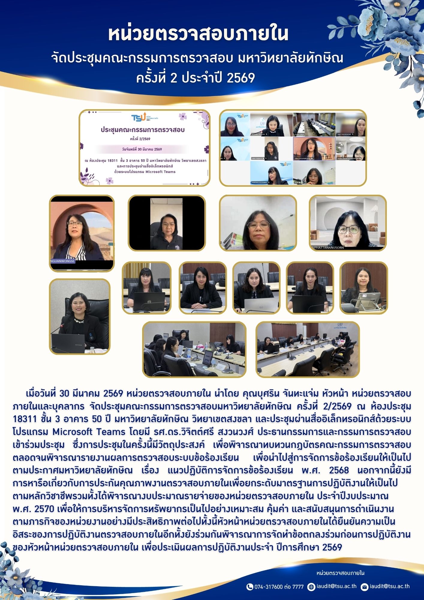ประชุมคณะกรรมการตรวจสอบ มหาวิทยาลัยทักษิณ